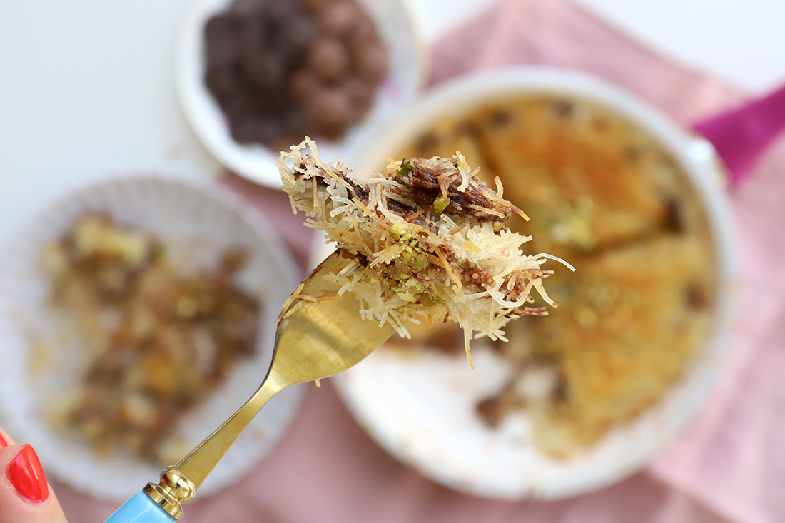 - *חוזרים על הפעולה עם הקדאיף הגבינה והשוקולד שנותרו