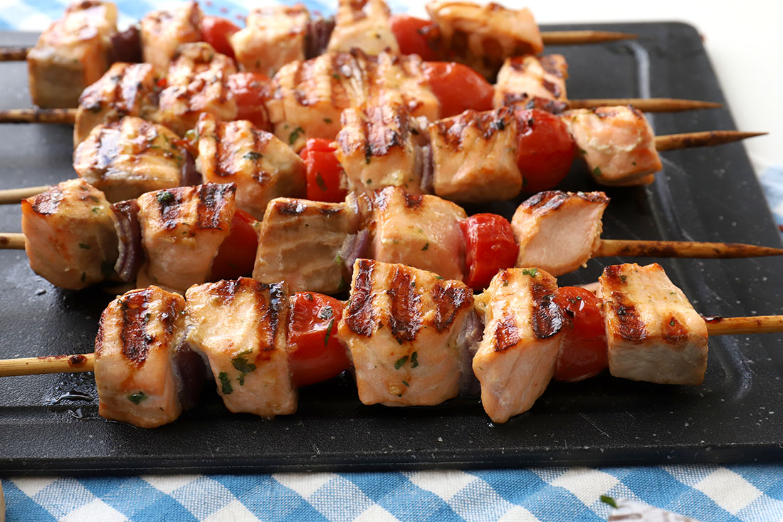 - שיפודי סלמון 10-12 דקות על תוכנית גריל חום גבוה