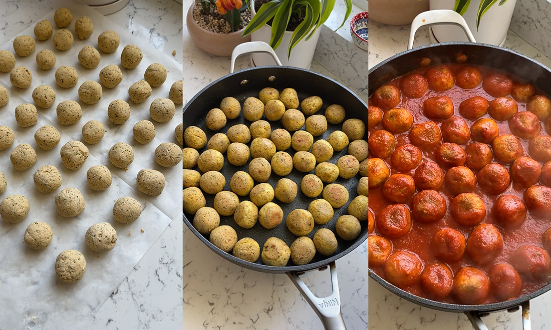 - מחממים מחבת עם מעט שמן זית ומטגנים את הקציצות כמה דקות, תוך כדי ערבוב, עד שהן צרובות מכל הצדדים.