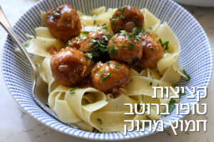 קציצות טופו עם בצל מקורמל ברוטב חמוץ מתוק