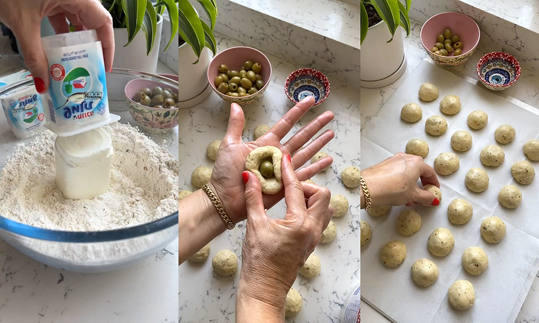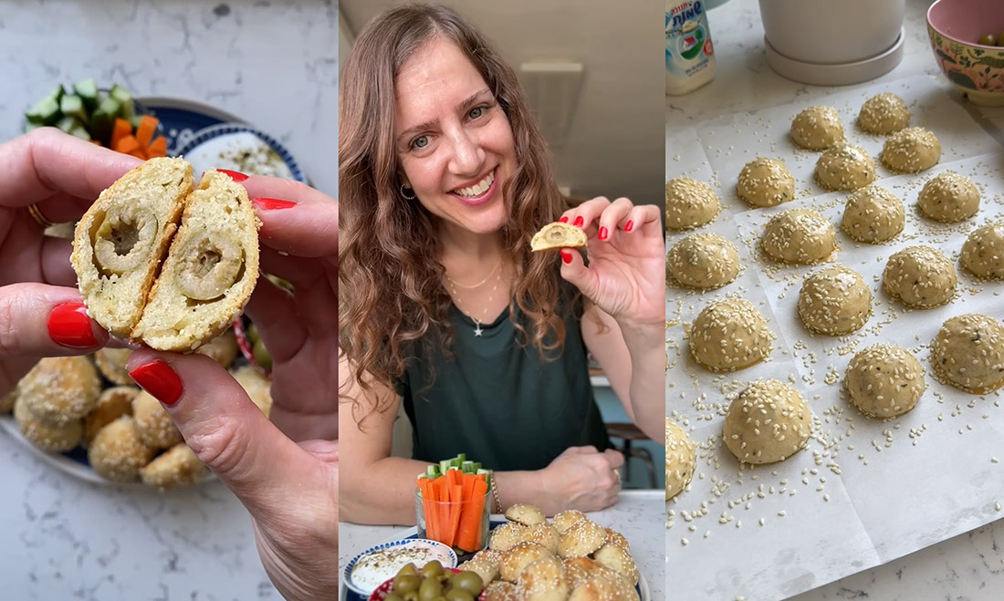 - עם האצבע יוצרים גומה בכל כדור ומניחים בגומה זית.